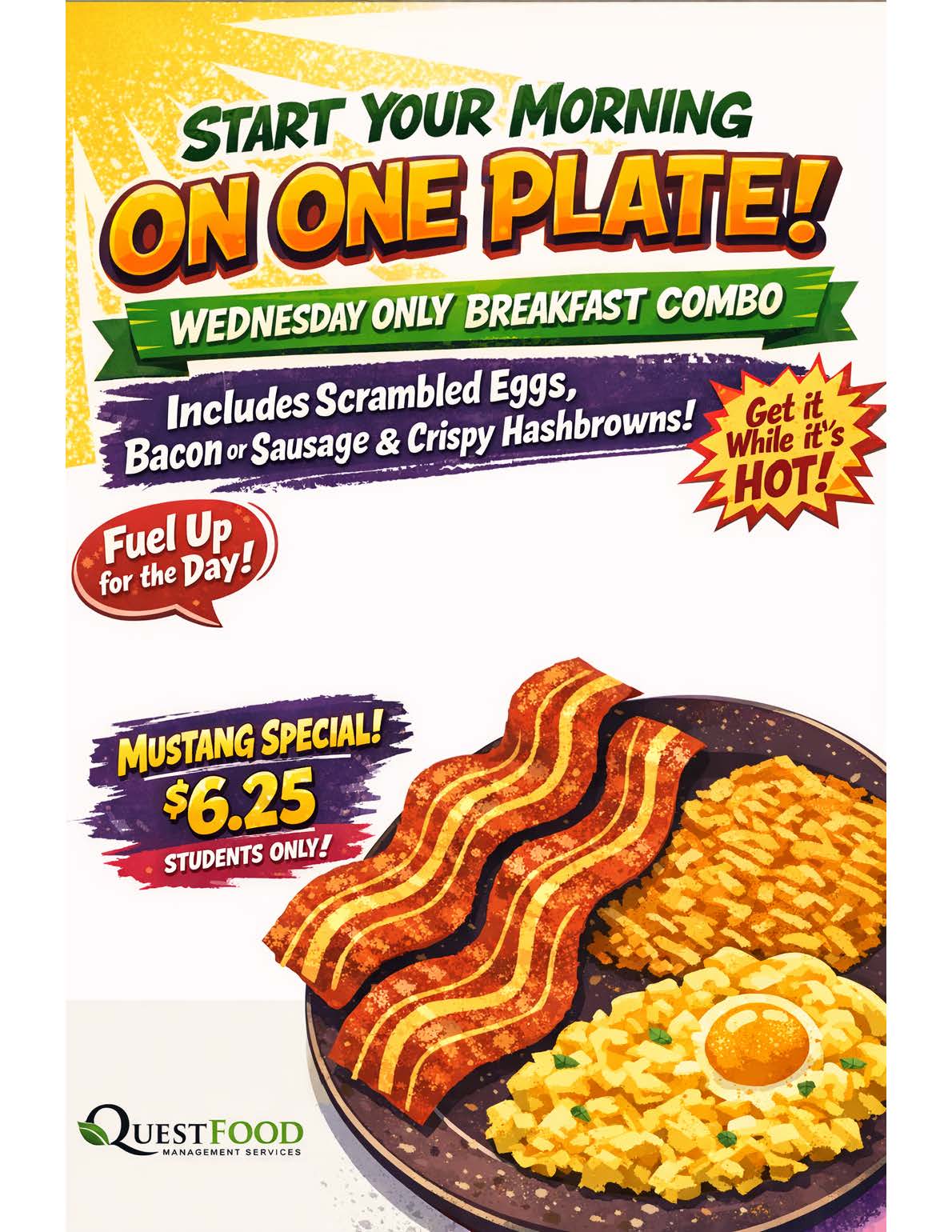 You will also have the option of Grilled Cheese for a Mustang option. Paid students' cost will be $3.50
