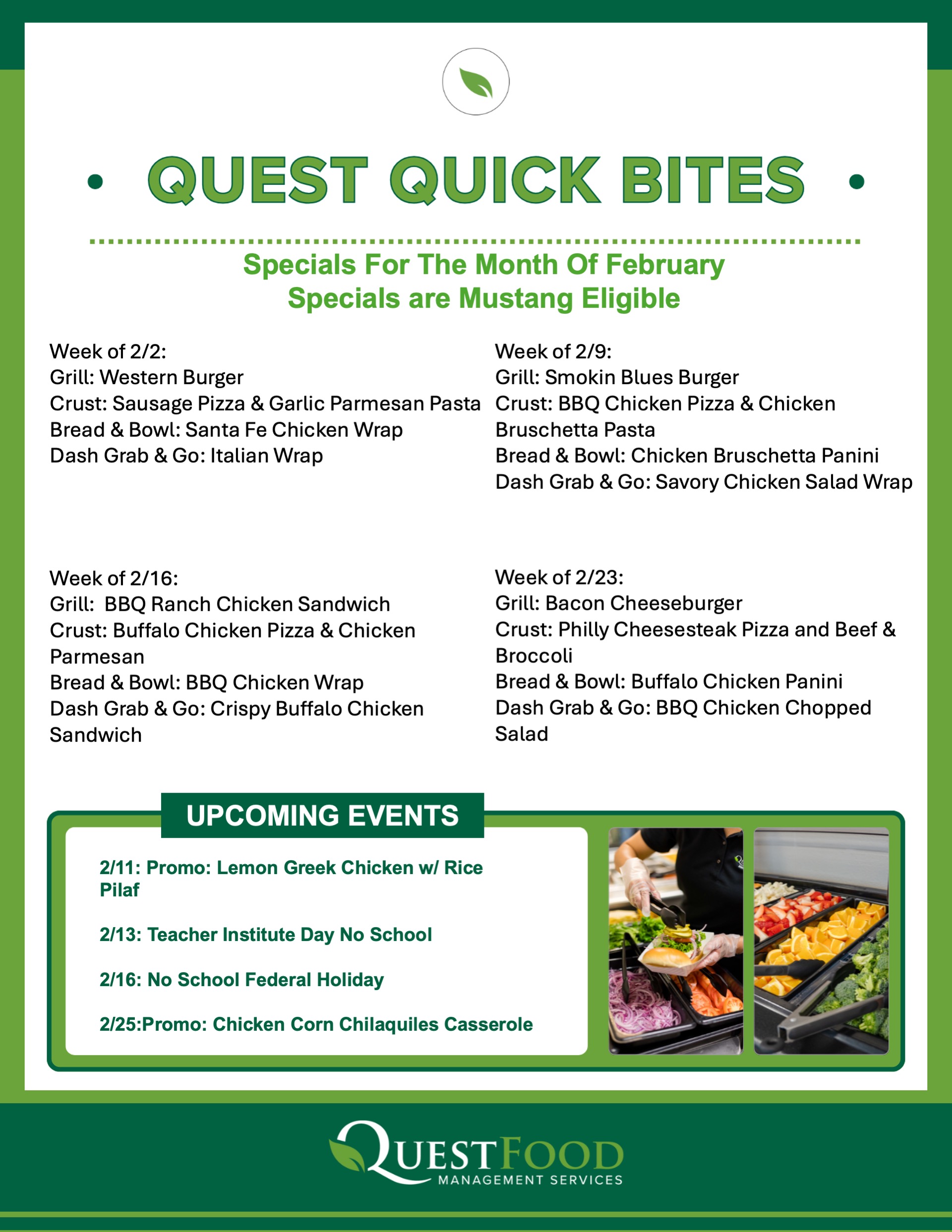 If a student or caregiver is having difficulty understanding what is included in the Quest Choice program at their school, our dining team is available to provide further details. Students and caregivers can contact Jonathon Lips, Food Service Director by email at jlips@questfms.com or phone at 847-903-4712, or email QuestChoice@QuestFMS.com to request more information.